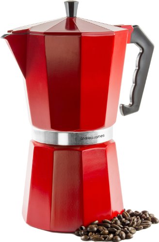 Andrew James - Cafetière À Expresso Style Italien De 12 Tasses En Rouge - Cafetière Italienne Expresso - Anneau De Joint Additionnel Inclus